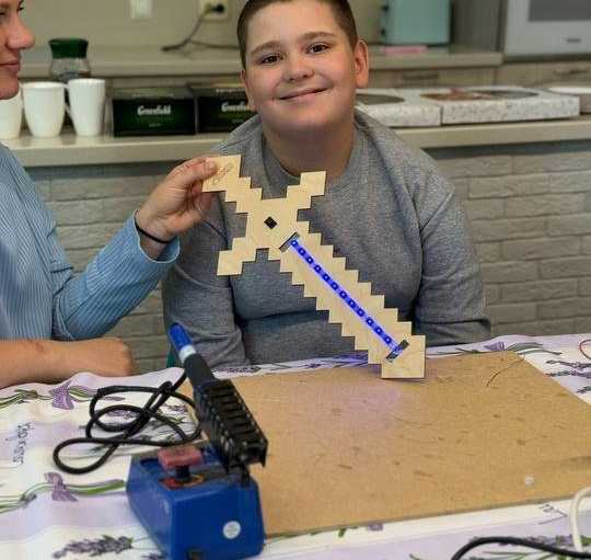 Именно паять мы решили на нашем мастер классе и выбрали поделку- светящийся меч!