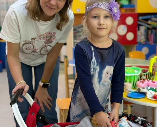 Пока мамочки тянули мышцы и занимались, дети не скучали и тоже бегали и прыгали, если могли. А для тех, кто не мог ходить были свои занятия тоже интересные и увлекательные!