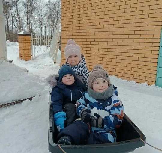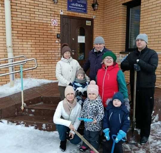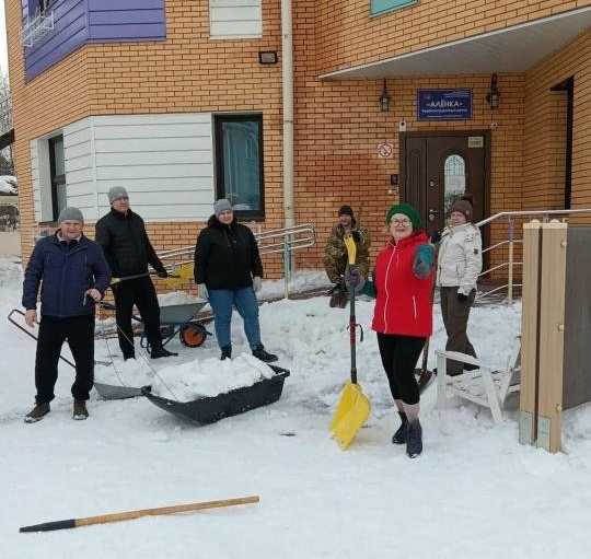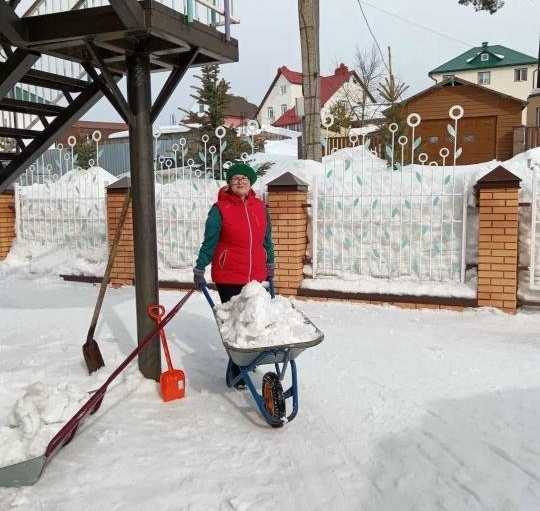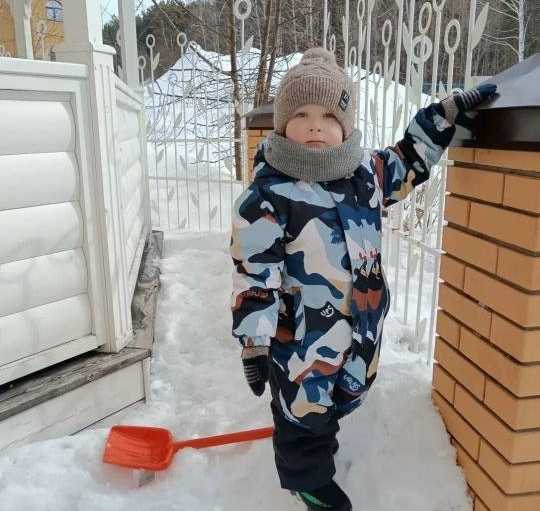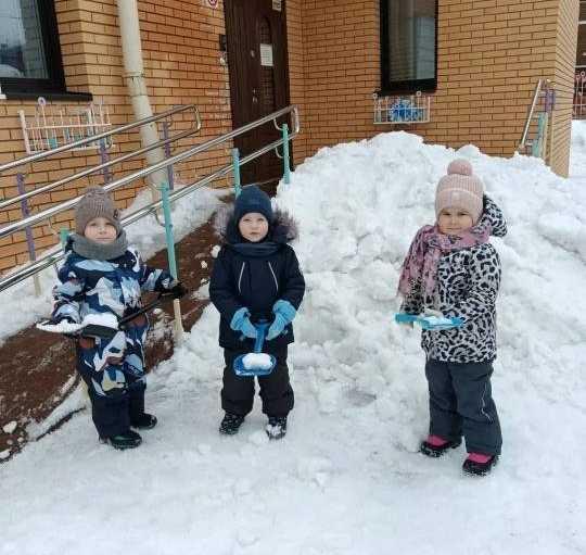 Ох, как это было тяжело: снег уже мокрый, тяжелый такой. Отваливаются и руки, и спина, и ноги. Но с такими милыми маленькими помощниками с работой справились.
